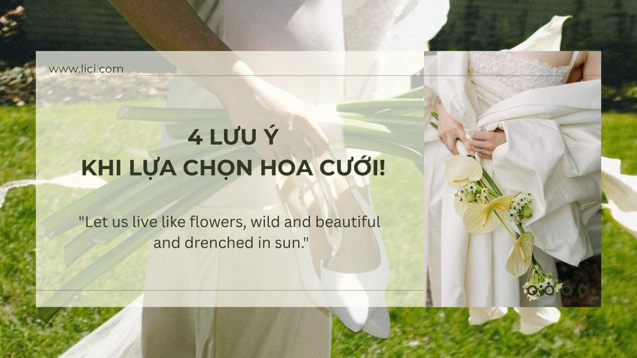 • Nếu cưới ngoài trời hoặc nơi nắng nóng, ưu tiên hoa có độ bền cao kết hợp thêm hoa khô để giữ dáng tốt hơn.