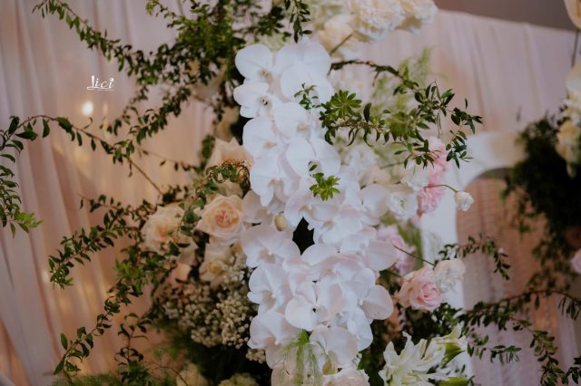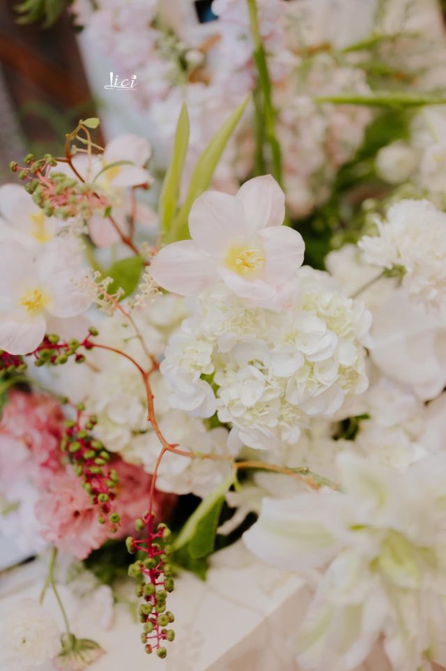 Điều khiến không gian này trở nên đặc biệt không chỉ nằm ở tone màu trắng thuần túy, mà còn ở cách các chi tiết được sắp đặt theo từng tầng, từng lớp. Như thể bạn đang lạc vào khu vườn địa đàng, nơi mỗi bước chân đều mang đến một trải nghiệm thị giác mới mẻ.