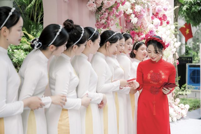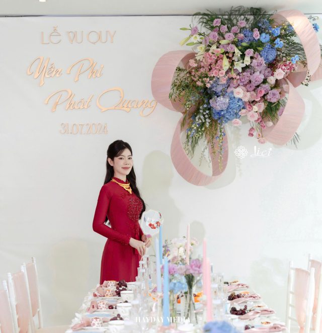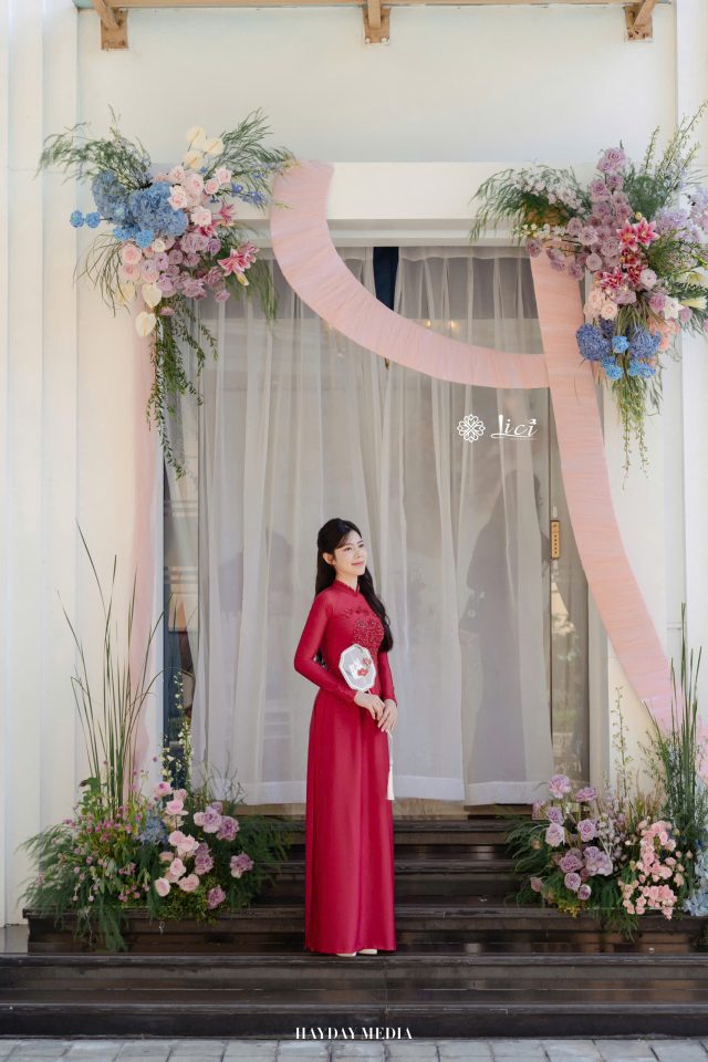 Cảm hứng về vẻ đẹp sắc xuân mang tới đã cho chúng mình hình dung rõ hơn về ý tưởng cho lễ vu quy của CD Ngọc Huệ. Một vẻ đẹp của sức sống bừng sinh nhưng nhẹ nhàng và để lại nhiều vấn vương.