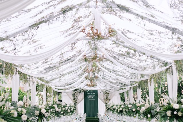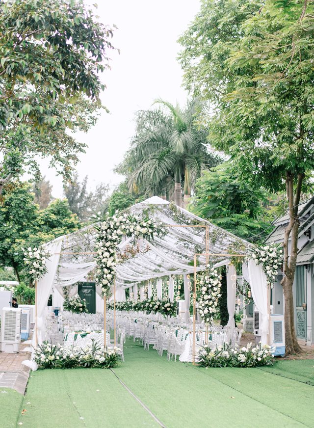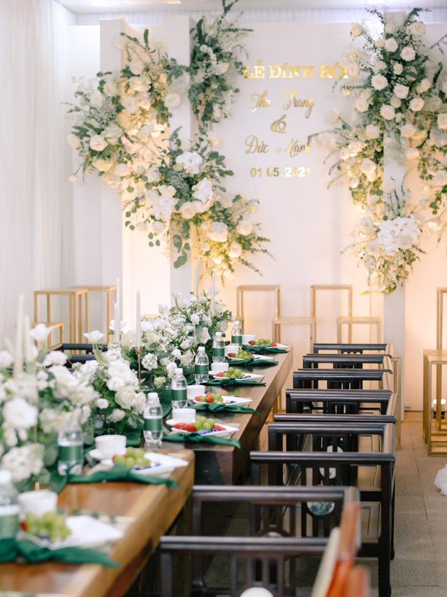 Cả hai bạn đều là những người rất yêu thiên nhiên, yêu thích màu xanh gần gũi của lá. Cũng bởi vậy mà ngay trong lễ đường sau đó của Mạnh & Trang, concept mang cùng hình tượng về thiên nhiên.