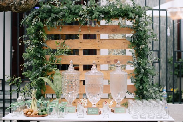Điều đặc biệt, lễ tư gia được tiến hành trong khuôn viên mở và tương đối rộng rãi, quầy welcome drink với các thức uống theo cùng concept đã được bố trí để tạo nên điểm nhấn và ý nghĩa dành cho khách mời.