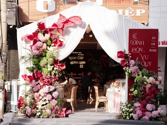 Không chỉ là thi công, đó là quá trình Lici và ekip thổi hồn vào từng đóa hoa, từng gam màu khác nhau để hài hòa với từng dệt ánh sáng, tạo nên một lễ đường hoàn hảo, nơi mọi thứ hòa quyện trong vẻ đẹp tinh khôi, nhẹ nhàng mà đầy cảm xúc.