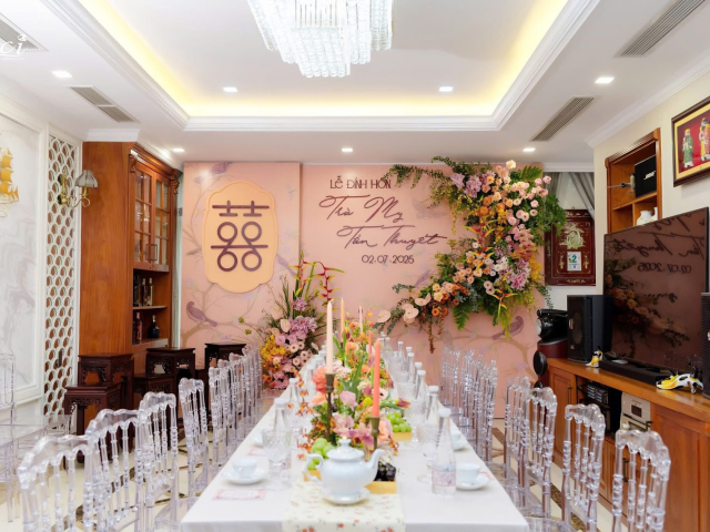 Mỗi khoảnh khắc trong buổi lễ đều như được dàn dựng bởi cảm xúc: nhẹ nhàng, vừa đủ, nhưng chạm thật sâu. Từ nghi thức rắc đường mở đầu cho vị ngọt hạnh phúc, đến khoảnh khắc trà sữa được rót đầy, tất cả đều thể hiện cho tâm ý thấu hiểu sở thích của nhau, sự chân thành và tình yêu lãng mạn của cô dâu và chú rể.