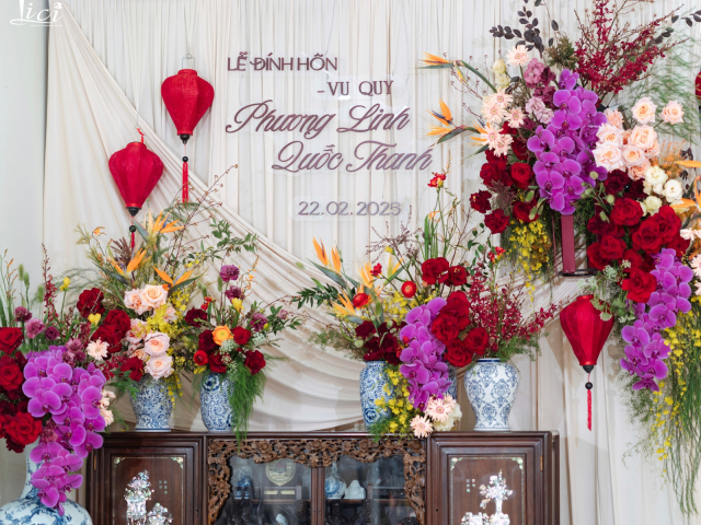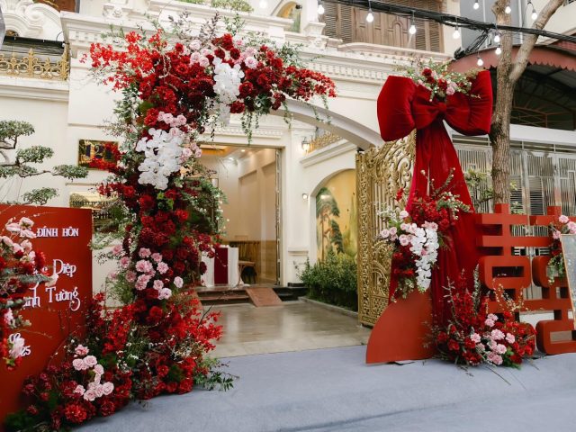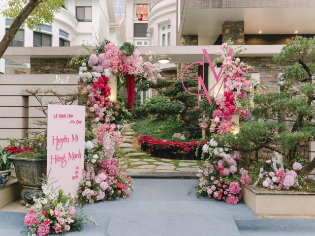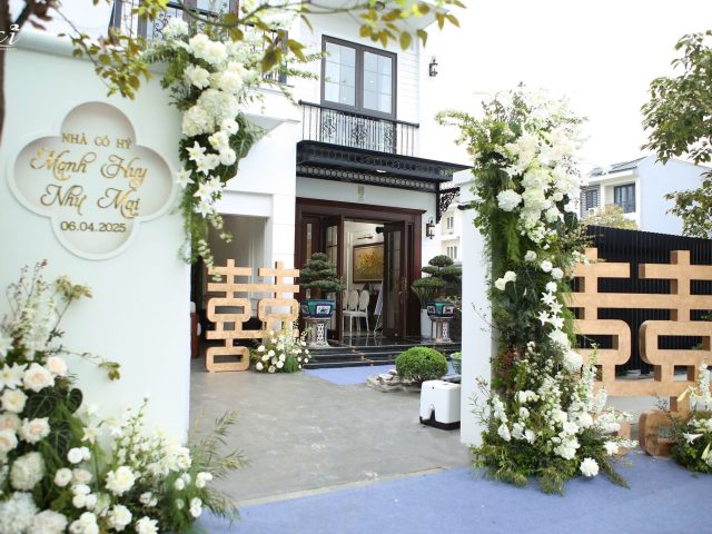 Từng cánh hoa, từng lớp vải voan không chỉ là yếu tố thẩm mỹ, mà còn như lời chúc phúc lặng lẽ dành cho cô dâu – người con gái sắp rời tổ ấm để bước vào một chương mới của cuộc đời. Đó cũng là lý do vì sao không gian ngày hôm ấy không hề phô trương, nhưng lại đầy ắp cảm giác thân thuộc, gần gũi – như một lời thì thầm dịu dàng: “Nhà vẫn luôn là nơi để về, nhưng hôm nay, cũng là nơi bắt đầu.