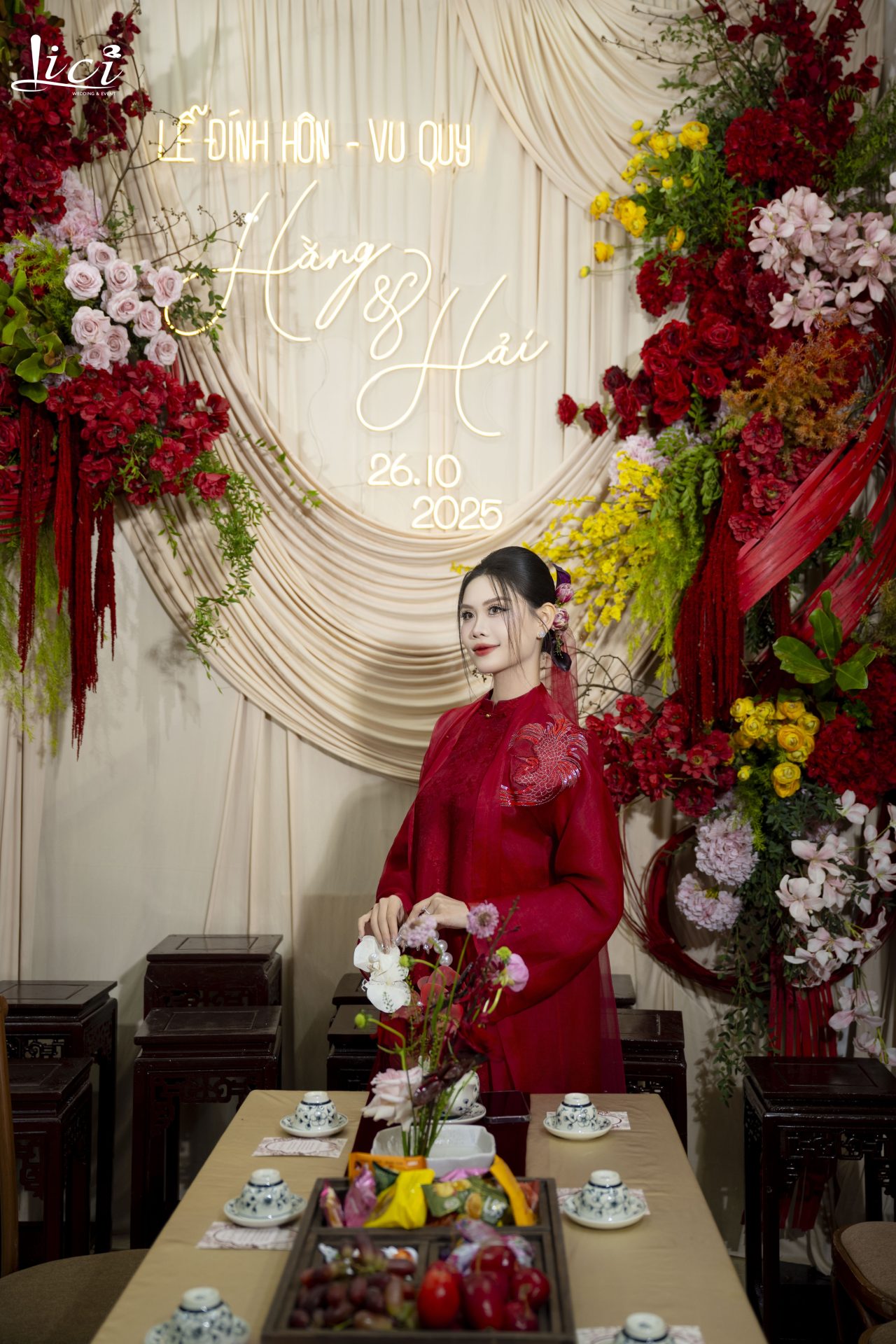 Bước qua cổng hoa phủ đầy sắc đỏ, không gian như mở ra một thế giới của yêu thương và sum vầy. Ở đó, từng chi tiết đều được Lici chăm chút tỉ mỉ, từ lớp vải lụa buông nhẹ, những chùm hoa tươi đan xen, đến ánh sáng vàng ấm lan tỏa khắp căn phòng, tất cả cùng tạo nên cảm giác vừa gần gũi vừa sang trọng. Không phô trương, không cầu kỳ, chỉ là vẻ đẹp của sự tinh tế và ý nghĩa, nơi truyền thống được thổi vào hơi thở của hiện đại.